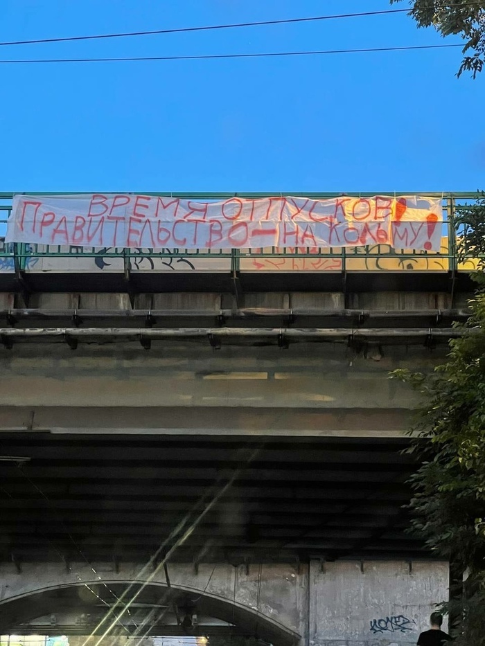 Растяжки были замечены в трех районах города: на мосту проспектов Стачки и Нагибина, а также на фасаде кинотеатра «Юбилейный».