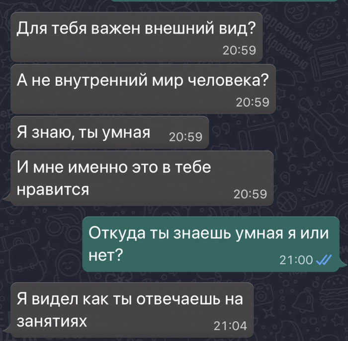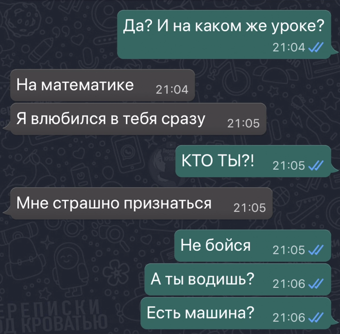 Я аж на обочину съехал. Мы то его за нецензурщину ругаем и то, что стены изуродовал. ( а откуда доктор, у вас такие картинки?) А у него романтика в жопе играет! Сентиментальный мальчонка! Снова звоню классной: а у нашего супергероя, есть гёрлфренд? Да! Точно! Девушка, айнанешной наружности, на класс старше учится.