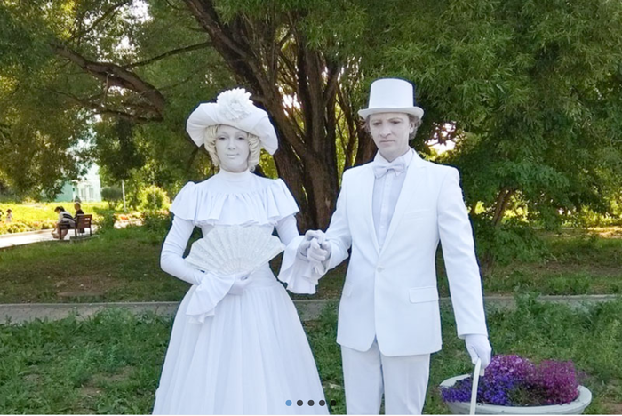 Из-за пандемии массовые мероприятия были запрещены, но ощущение праздника витало в воздухе. Из громкоговорителей на центральных улицах звучали песни, по городу колесил автомобиль с огромными миньонами, которые запускали мыльные пузыри и радовали встречных детей воздушными шариками. А на бульваре Строителей добрянцы могли увидеть две «живые статуи», в роли которых выступили артисты пермского театра эстрады «CUSTODES».