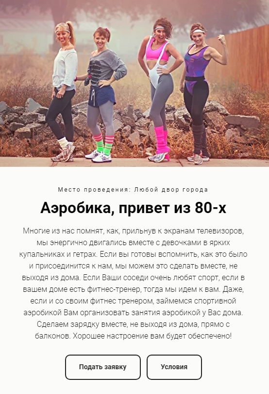 10 июня день двора.народу предлагают выйти на балконы и сплясать аэробику. все бы ничего,только в городе большинство домов хрущевки где на балкон выйти страшно.