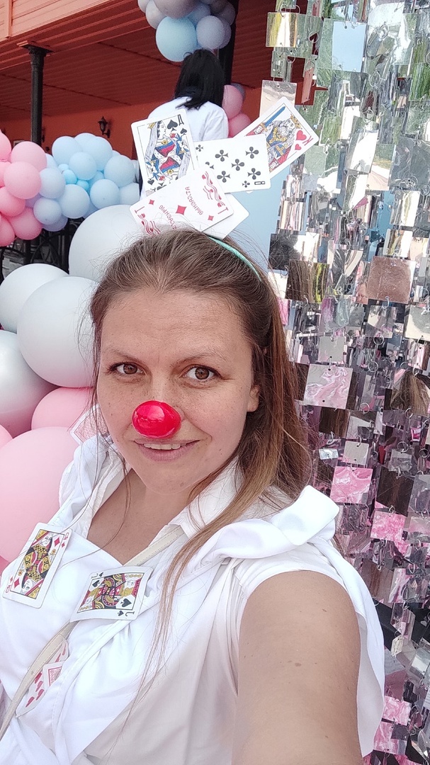 Клоун в ластах может ничего не делать, а просто ходить. Вот я и хожу, и болтаю с всеми, а потом приглашаю всех в конференц-зал, куда переносится празднование.