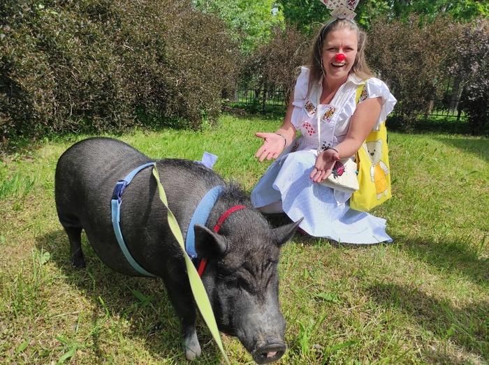 Хочу познакомить совего поросенка с местным, но его уже уводят, выманивая на виноградинку. Хрюня негодует и начинает охоту за ушами. Чмокает всех в щеки, пытается утащить носки и ведет себя из рук вон плохо. Но всем нравится, и мне приходится смириться.
