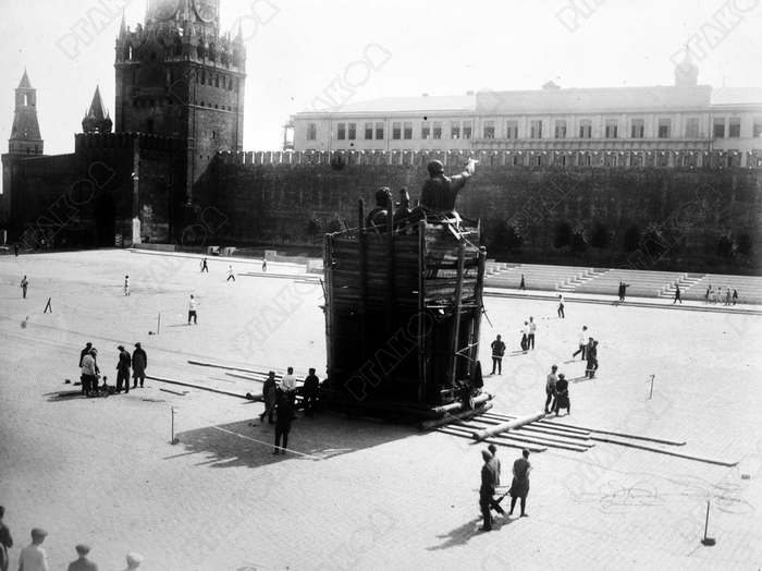 На первом фото - процесс переноса этого большого памятника к Покровскому собору, где он и стоит в настоящий момент.