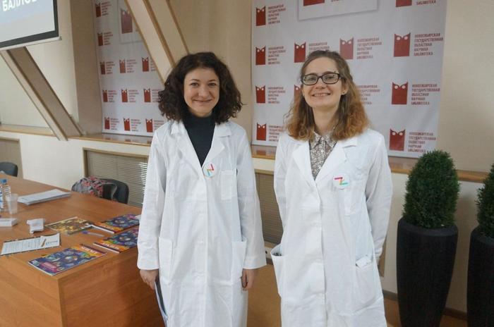 В Новосибирске «ЛАБА» прошла на пяти площадках: двух в Академгородке, в Биотехнопарке, ГПНТБ и областной научной библиотеке, вместивших около 700 участников. А главными организаторами выступила хорошо известная своим фестивалем «EUREKA!FEST» команда «Эврика». Наш корреспондент побывал на одной из площадок и взял небольшое интервью у «завлабов» - руководителя лаборатории гибридных материалов для электрохимических накопителей энергии ФЕН НГУ, к.х.н. Екатерины Федоровской (на фото - справа) и преподавателя НГУ, ст.н.с. лаборатории поведенческой экологии сообществ животных ИСЭЖ СО РАН, к.б.н. Софьи Пантелеевой (на фото - слева).
