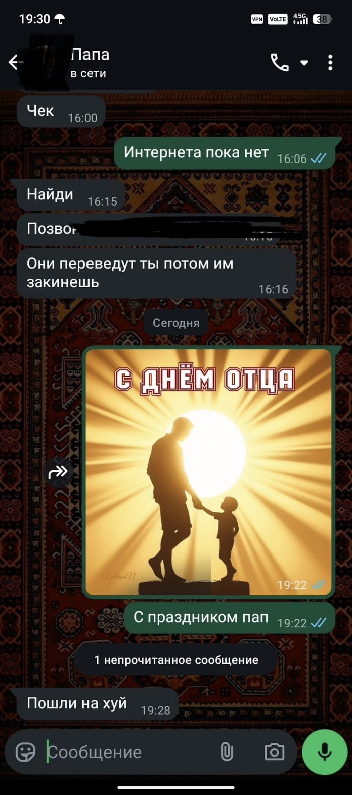 Недавно узнал о новом празднике. Батяню поздравил, сам отмечаю (у самого трое детей, это про кого знаю), и всем гордым отцам на Пикабу передаю пламенный привет! Если мы не вложим своим детям разумное, доброе, и вечное (и умение защитить это любой ценой), то потеряем страну. С праздником, Отцы, Батяни, Папы!