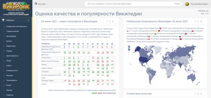 Популярное в многоязычной Википедии за 22 июня 2021 года