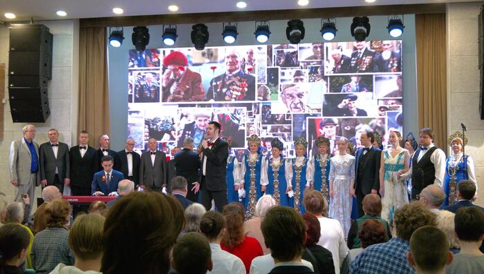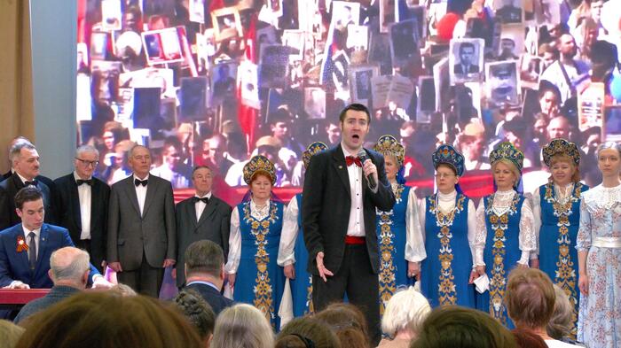 ✨Зрители услышали любимые песни советских и российских композиторов, такие как «Солдатская шинель», «Русский вальс», «Лунный вальс», «Синяя вечность» и знаменитую «Поклонимся великим тем годам».