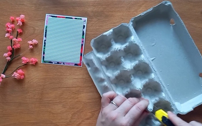 Бумага плотная белая - 11х13см., бумага цветная (с красивым дизайном) - 10.5х12.5 см., картон гофрированный - 9.5х11.5 см., упаковка из под яиц, клей, цветы(на канале есть пост как сделать цветы из гофрированной бумаги) или использовать сухоцветы.