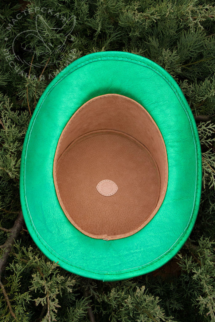 Цилиндр святого Патрика. Фасон: классический цилиндр (средней высоты), в ирландских цветах и стилистике праздника "День святого Патрика". Натуральная кожа крс (цвет "ярко-зеленый металлик"). Внутренняя часть отделана тонким спилком (цвет "персиковый"). Литая латунная рамка. Все швы выполнены вручную. Головной убор изготовлен по индивидуальному заказу для Octokuro, уже мелькал на пикабу 17 марта.