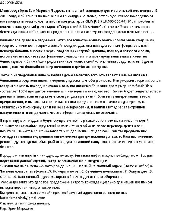 Пришло мне недавно на мыло письмо с таким содержанием: