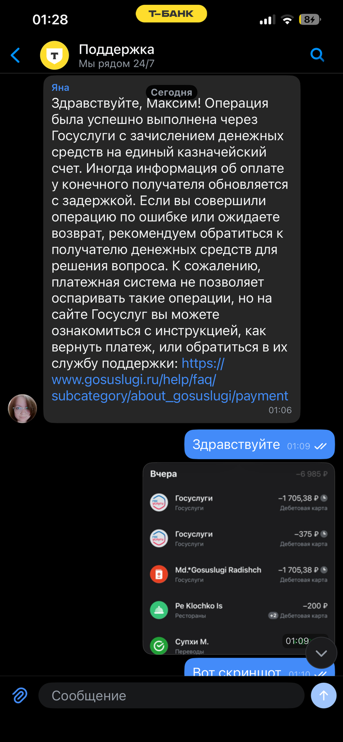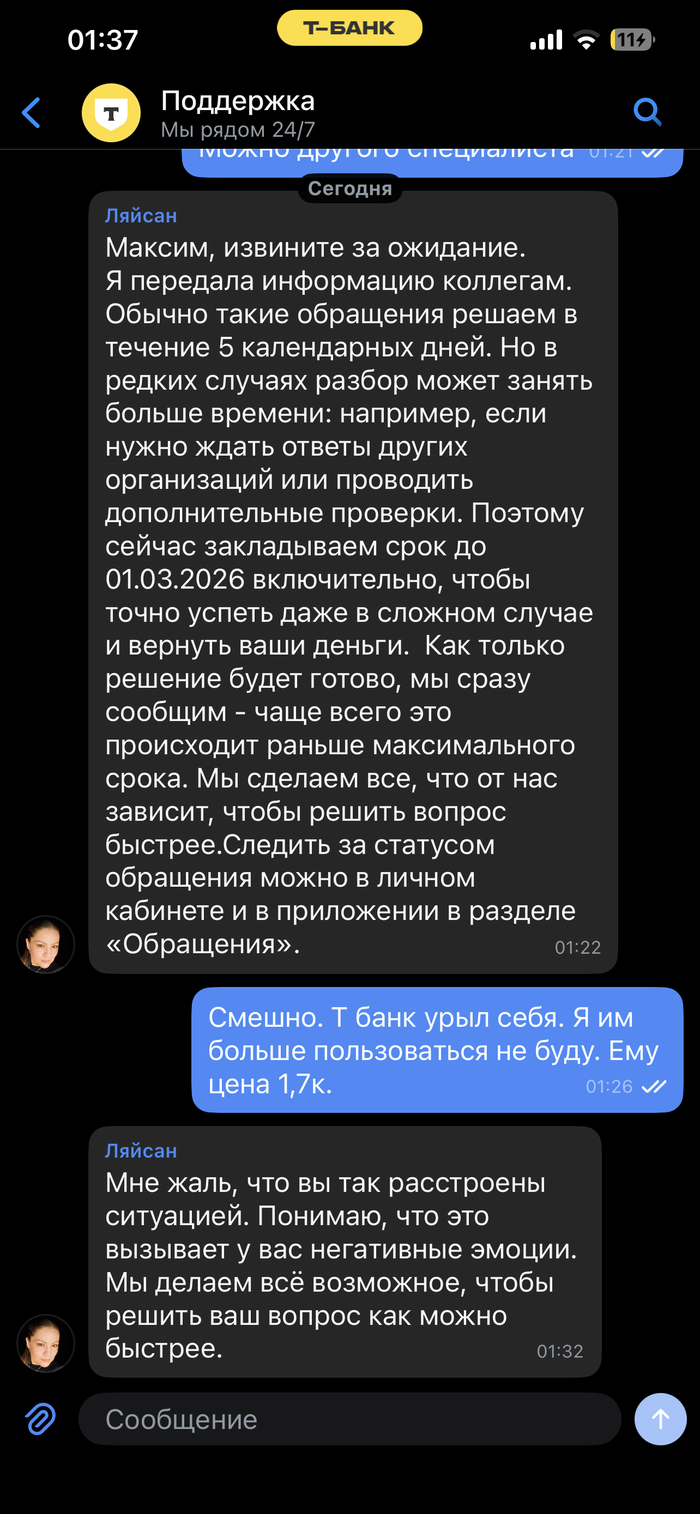 По телефону снова пояснили, что нет инструментария для возврата денег в другой банк по СБП. Ничего сделать не могут, у них лапки. Сказали, что я уже сделала все возможное, заявление зарегистрировано. Раз со мной не связывались, вполне вероятно, что человека это не настолько беспокоит. Ну и отправили еще и в полицию, если сильно переживаю, но ради тысячи рублей упираться настолько уже влом. Хотя опасаюсь, что и за это может прилететь что-то.