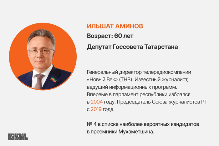 В силу многих причин такие сюрпризы сейчас невозможны. Об этом говорит и то, что сами депутаты Госсовета рассуждали о фигуре потенциального преемника с большой неохотой, предпочитая не высказываться. Как выразился один из народных избранников, «легче погоду предсказать». Поэтому в тексте представлен взгляд редакции «Вечерней Казани» вместе с суждениями опрошенных экспертов. Рейтинг представлен от самого маловероятного кандидата до самого вероятного.