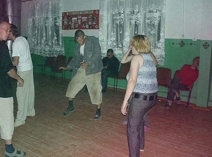 Деревенская дискотека, если взглянуть на неё из космоса, то она напоминает лишайное поле. Все стоят кружочками, посередине которых стоят женские сумки. Лишайные пятна. И топчутся на месте,охраняя свои сумки. В любом случае, танцами это назвать нельзя.