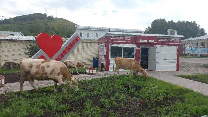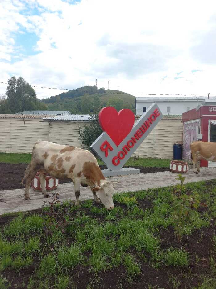Поехал под конец отпуска в деревню(райцентр) к родителям, а там ремонт, обновили сельскую площадь. Поставили лавочки, газон посадили, фонтан работает, установили модную нынче надпись Я ЛЮБЛЮ.... Вот только без местного КАЛОрита никуда