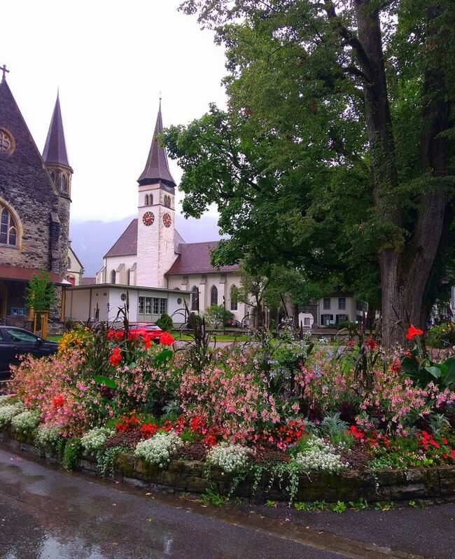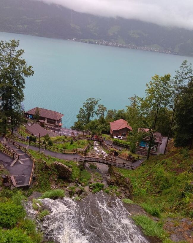 Еще водопад.Очень красивый. Несмотря на дождь, природа порадовала даже в такую погоду.Немного видов Интерлакена. Вода там имеет лазурный оттенок. Очень красиво. Поехали в соседний городок Шпиц. Снова накрыл дожжжждь.