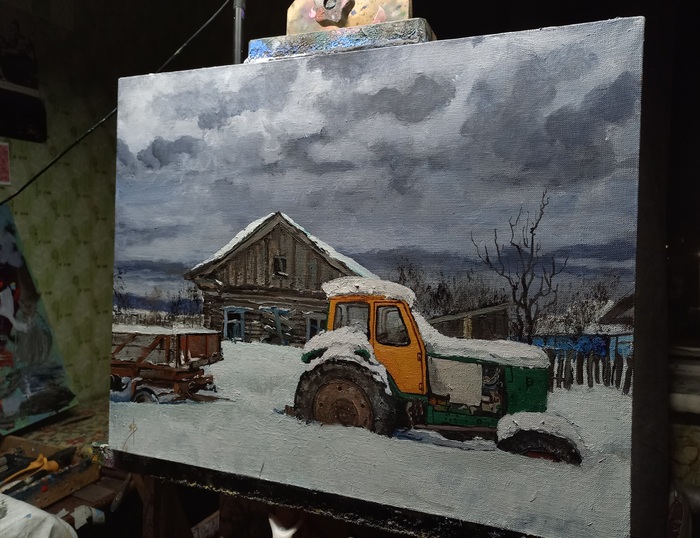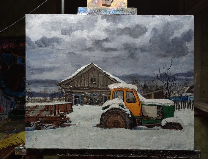 Работяга в зимней спячке , но весной он снова поедет в поля , а пока заслуженный отдых , ремонт , и покой , зимой почти всё останавливается, перезагружается для новой жизни - весны и дальнейшего круговорота пока время , случай, или старость не заберёт в свои объятия. Х/М 40х50 '25 Продаётся Эту работу вы можете увидеть на выставке до 9 го января , а ещё 6 декабря можно приехать в дом Широкова где будет розыграна одна моя работа , адрес : График работы: Пн.- выходной Вт. - Вс. с 9-00 до 17-30 Точный адрес : 142500, г. Павловский Посад, пл. Революции, д. 9 Для связи мои ссылки: https://t.me/feliciniarts телега где проходят аукционы, так же сегодня в 21:00 заканчивается двадцать пятый аукцион https://vk.com/clubfelicini сообщество в вк где в товарах есть доступные картинки с ценой Всем спасибо за внимание :)