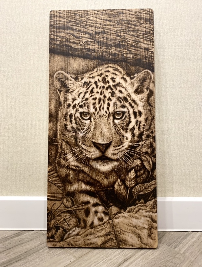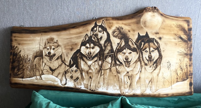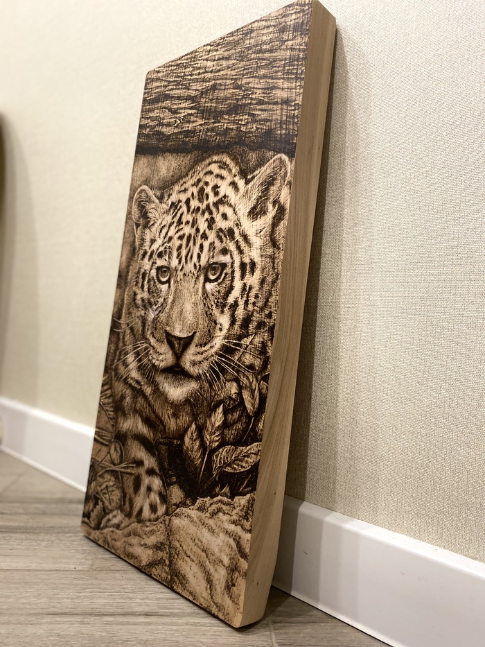 Я выжигаю только вручную на различных породах дерева, на этот раз под работу был выбран прямоугольный срез липы 65/32 см.