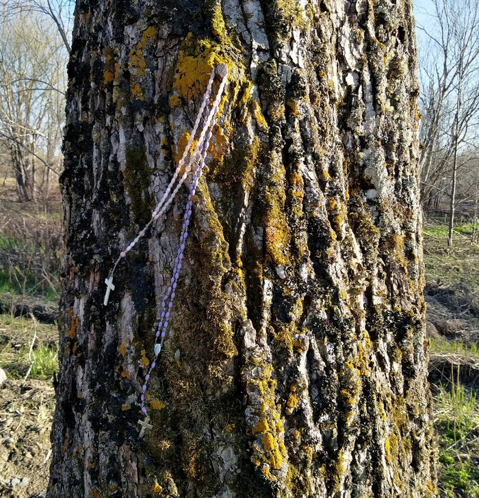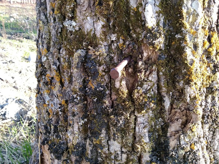 Работаю на Сахалине по вахте. На одном из участков, на пути к нему, на обочине грунтовой дороги есть странное дерево. Дерево старое и жуткое. С высоты примерно метра полтора через каждые метр вбиты гвозди. По виду гвозди были вбиты давно, кора успела их обрасти. А на нижнем гвозде висит крест на цепочке.