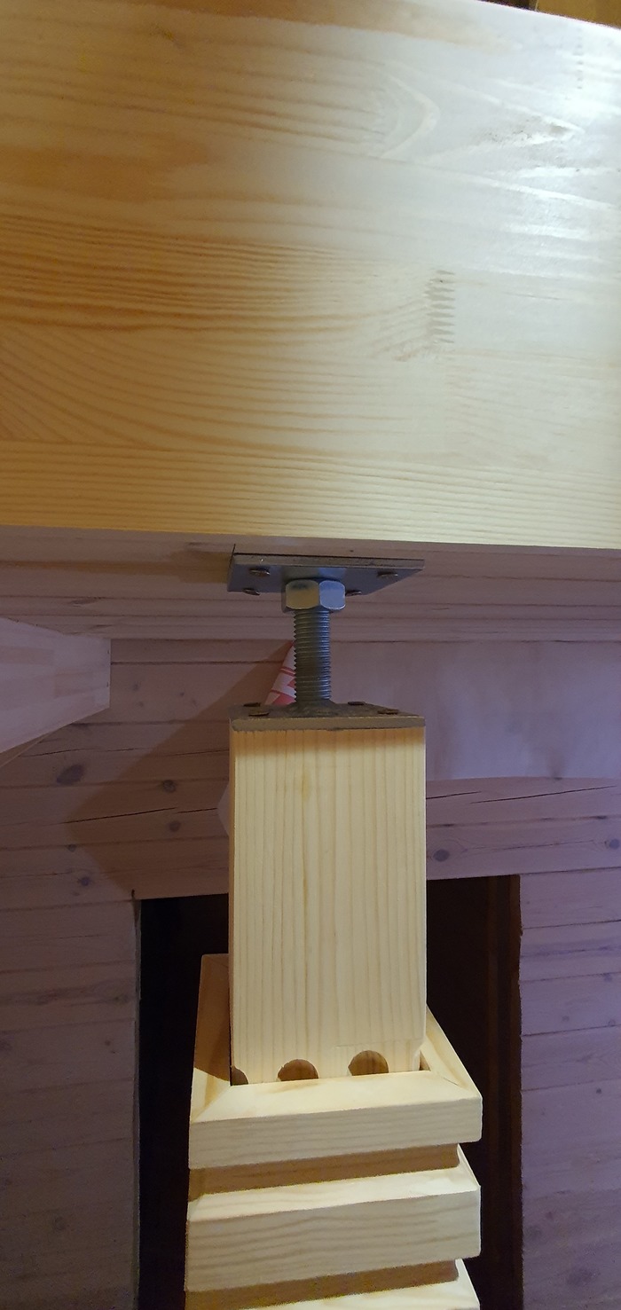 Для усиления балки установил опорный столб проточку сделал как на ограждении, конечно с домкратом для будущей регулировки если потребуется
