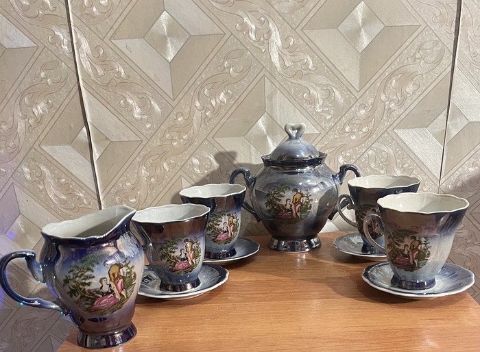 Помогите, пожалуйста, понять производства какого завода сервиз и примерно какого периода. И сервиз чайный или кофейный? Вид сервиза, по-моему, Мадонна: