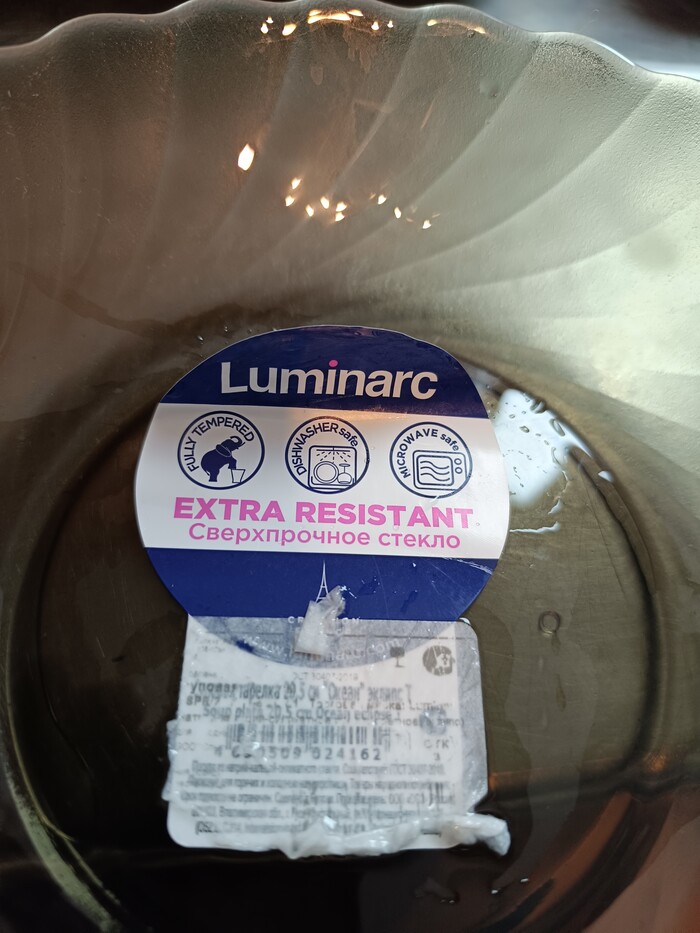 Потому что Luminarc теперь в черном списке. Наклейки приклеены изнутри тарелки, с той стороны, с которой едят, водонерастворимым клеем. После отрыва осталось много клея на стекле, который надо смывать обезжиривателем. Там клей аналогичный клеям в рекламных пленках типа Оракал или обычного скотча.