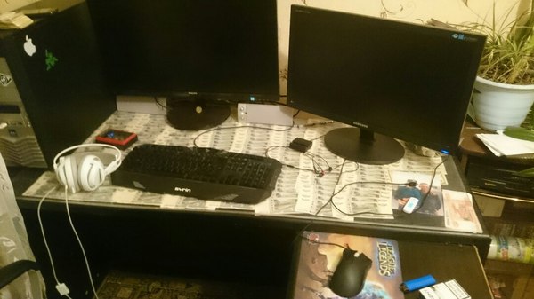 Поставил остальные части моего компьютера, а пустой фрагмент стола заложил фотографией со своей тетей и наличной на покупки разных штучек. =)