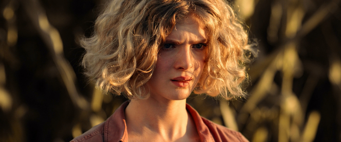 «Беглянка» 2018-го возвращается к исходной истории, потому что главная героиня — это девушка Рут, которая в конце рассказа носила ребёнка и мечтала сжечь поле. В фильме ей удаётся сбежать. Она годами путешествует по американским провинциям со своим сыном, пока не застревает в каком-то очередном городке, где прошлое её настигает. Но подобная привязка к рассказу не спасает фильм, потому что выглядит он так, будто на поддельной студии A24 сняли треш времен видеосалонов: заунывные виды окраин разбавляются редкой резней, а за всех кукурузных детей отвечает заторможенная девочка в жёлтом платье.