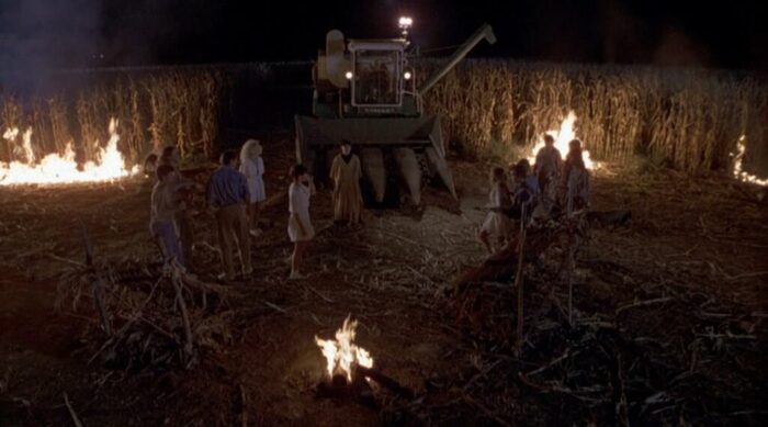 Но всё же «Дети кукурузы» — бенефис Франклина. Исаак, несущий Слово Того, Кто Обходит Ряды, потрясающий пальцем прямо в камеру, преданный своими учениками, стенающий на кукурузном распятии, обожжённый древней силой и вернувшийся с полей за возмездием — один из самых впечатляющих образов демонического ребёнка в кино.