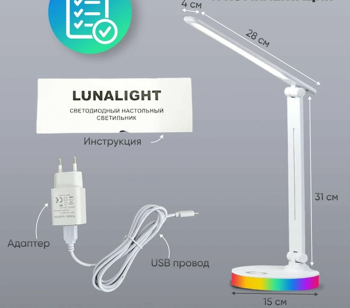 Особенности: специальная конструкция светодиодов исключает образование теней, что особенно важно для письма и рисования.