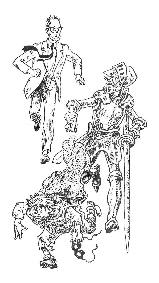 Как сейчас помню, меня осенило на книжке Юрия Коваля "Пять похищенных монахов", конкретно — вот на этом рисунке. Та же самая байда, кстати - офсетная печать, бумага - дерьмо и в две краски.
