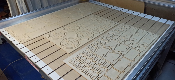 И остальные детали. Фоткал не всё, да и не особо это интересно. Просто для понимания, что чпу станок облегчает жизнь, но не делает за тебя всю работу. Какие фрезы ни бери, какие режимы ни ставь, остаётся ворс и т.д. Необходимость обработки, к сожалению, никуда не исчезает. А после фразы "Да что там тебе работать то, три кнопки нажать и готово", хочется просто взять и очень больно стукнуть по лицу. Думаю, коллеги меня понимают))