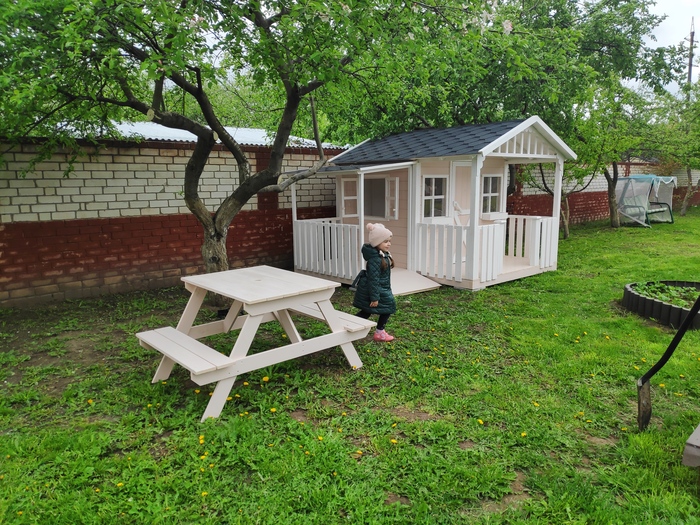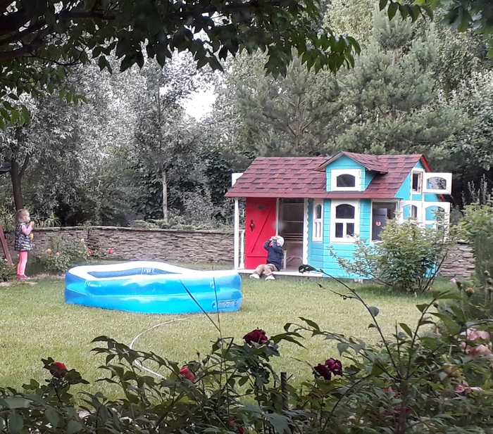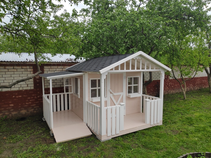 Этим летом у меня на участке строили новый хозблок. Детей отвезли к бабушке, я осталась присматривать за стройкой и, пользуясь освобождением от борщей и практически неограниченным доступом к стройматериалам и инструментам, затеяла ремонт в детском домике.