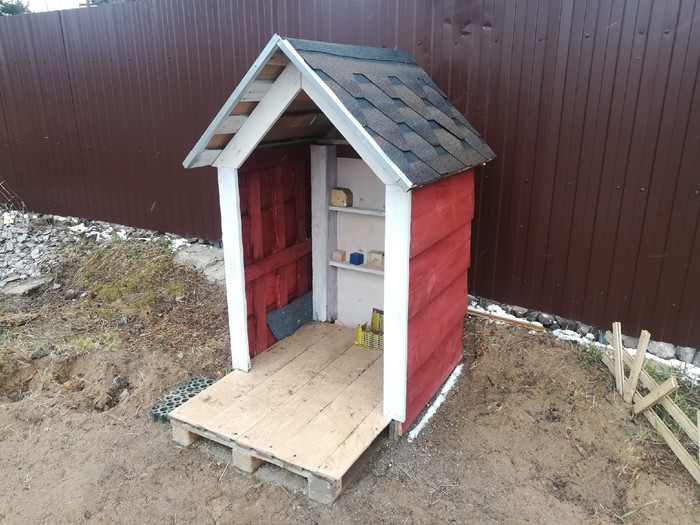 ЗЫ: Часть обрезков вагонки, остатков доски и брусков пошло и в другое дело. Собрал лавочку в домик, полки на стены, ящики под компост и т.д. и т.д.