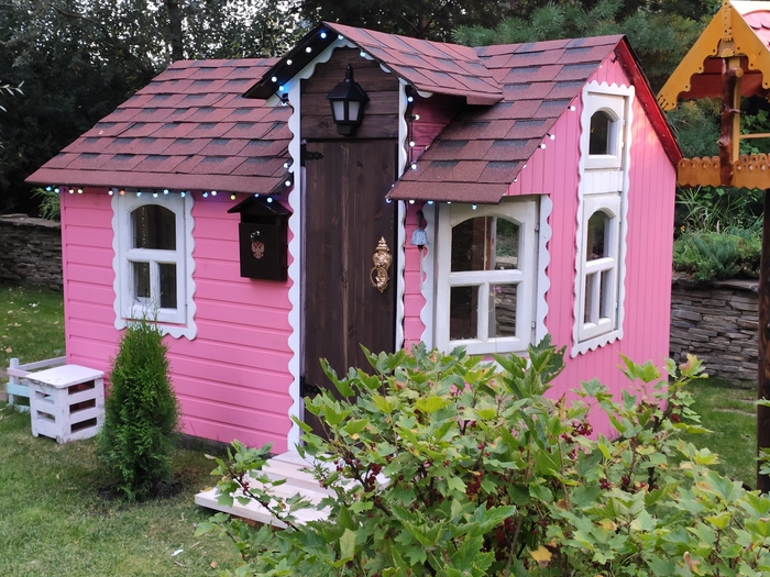 Три года спустя мы решили его перекрасить. А когда перекрасили, я его ещё и перестроила. Теперь розовый, без эркера и крылечка, за счёт которого увеличилась жилплощадь :))
