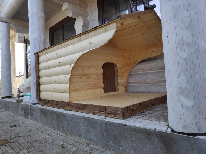 Закончил обшивать фронтальную стенку, сделал дверь из той же имитации бруса