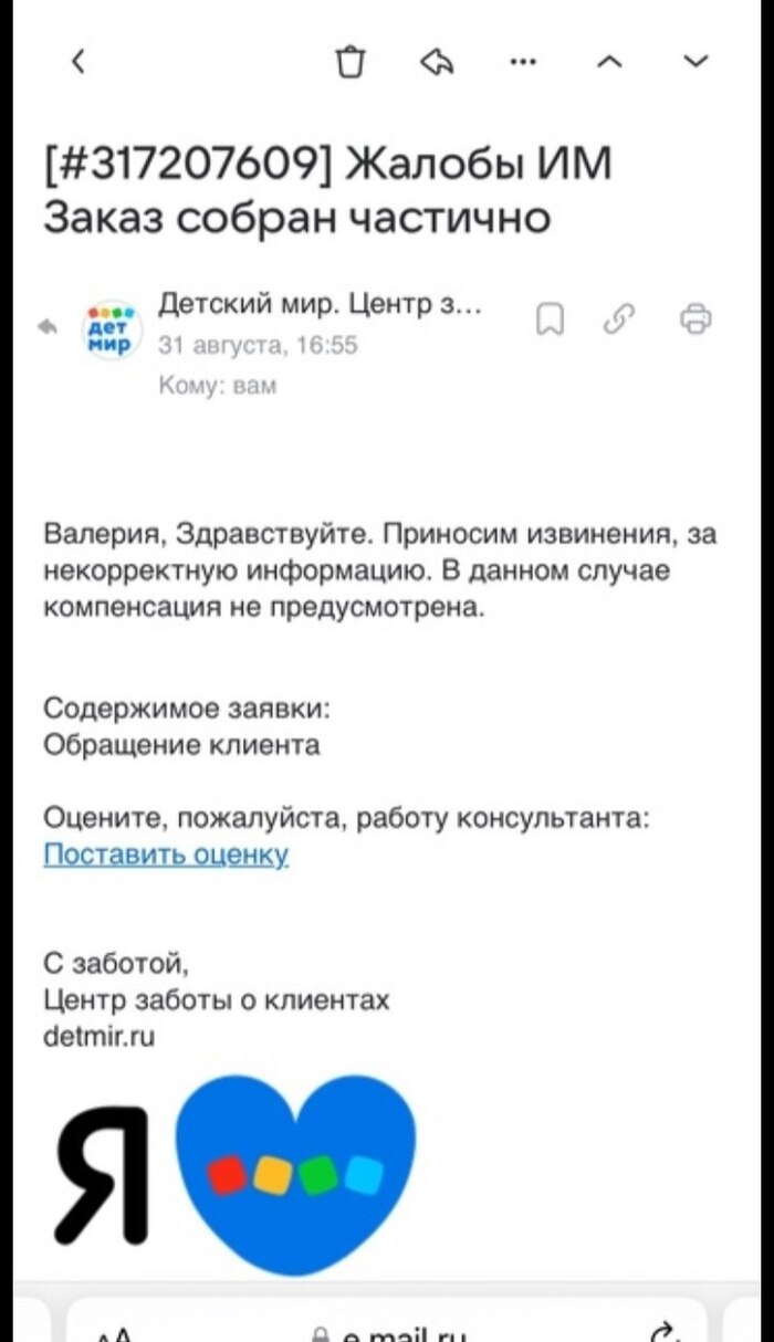 Всем привет! Давно ничего не писал, но произошла ситуация о которой хочу поведать. В связи с появлением ребенка начали пользоваться магазином детский мир, плюс ещё сертификатов подарили друзья и решили мы заказать нужные нам товары. 5.01.2025 был оформлен заказ на сумму 3800, 3000 были оплачены сертификатом, а 800 рублей с карты. После оплаты заказ разделился на два, в первом были товары которые можно было забрать уже через час в магазине, а во втором товары которые обещали привезти 11.01.2025 г. Собственно об этом заказе и пойдет речь. Спустя несколько часов после заказа доставка изменилась с 11.01.2025 г. на 16.01.2025 г. Решили ждать т.к. в этом заказе не было товаров первой необходимости.