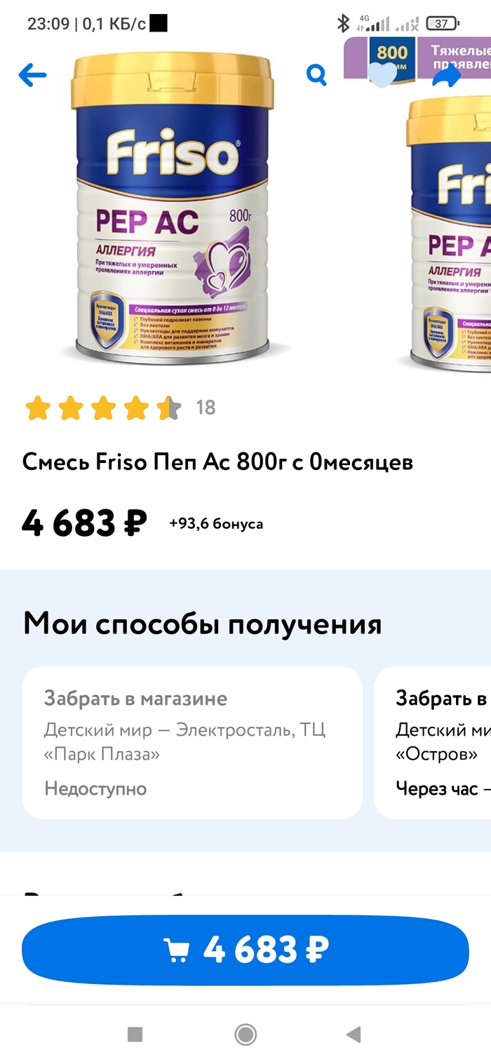 У трёхмесячной дочки аллергия, на искусственном вскармливании, врач выписал такую смесь. Цена в детском мире 2 дня назад и сейчас.