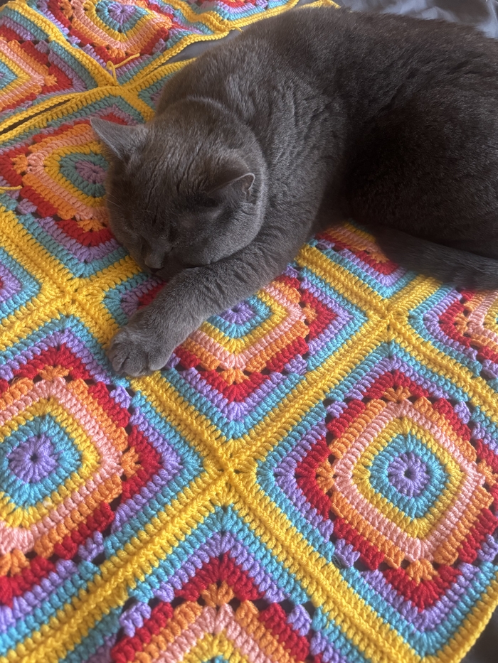 Я большая любительница необъятного вязания, для меня легче связать километровый плед, чем варежки или перчатки. Но себе оставила только с видами Костромы, на котором мой пёсик Винни сидит, остальные раздарены.