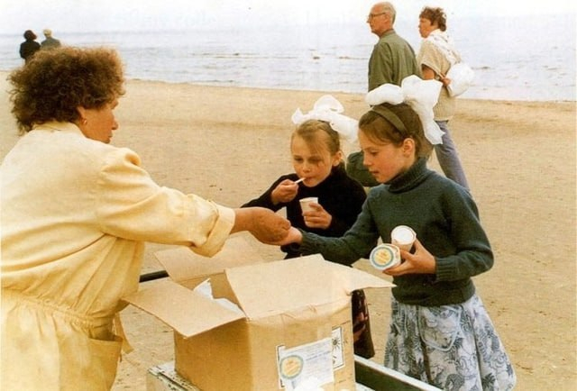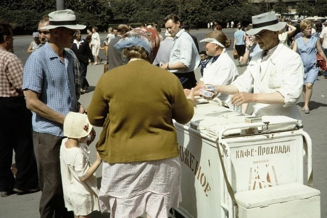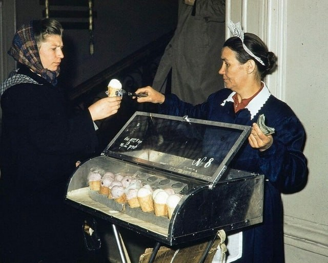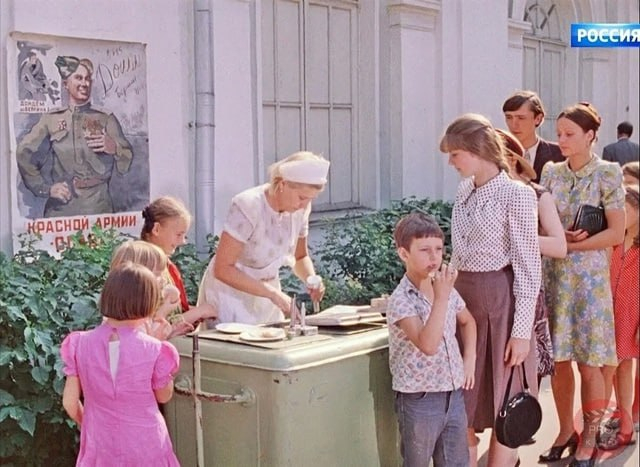 Несмотря на холод, дети (да и взрослые) с удовольствием лакомились мороженым на улице, даже в мороз. Это было своеобразным вызовом погоде и одновременно радостью, да и не таяло так быстро, как летом. 😉