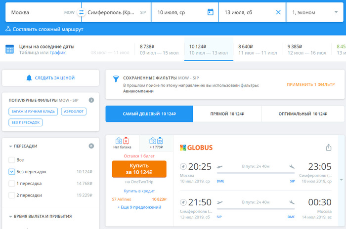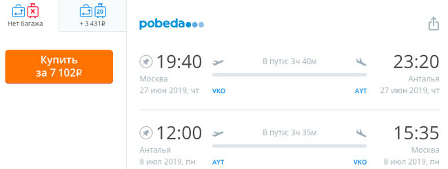 Справедливости ради, проверяем на агрегаторе перелёт на эти же самые числа. Получается дороже 10 тыс. руб. А что мы хотели в разгар сезона.