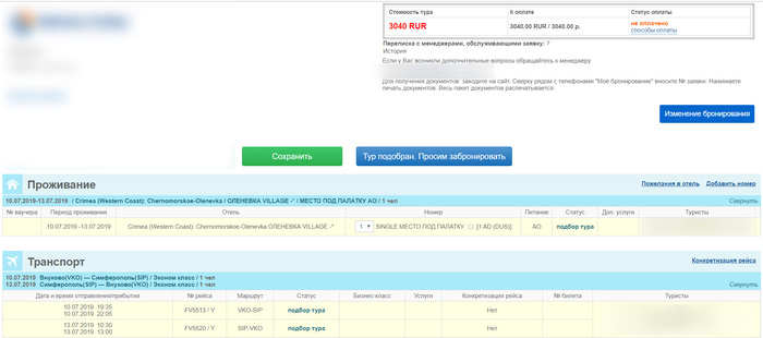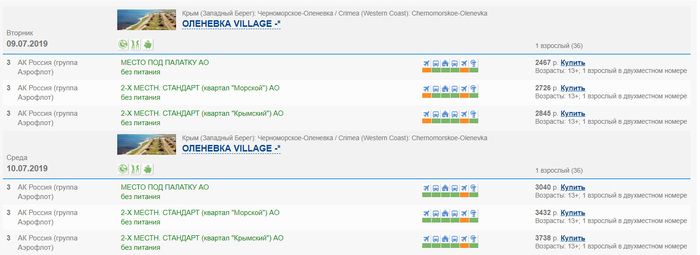 Заходим на сайт туроператора, выбираем в качестве проживания самое дешевое жилье. Эмпирическим путем я уже выяснил, что это вышеобозначенное место под палатку. В качестве авиаперевозчика - АК "Россия"
