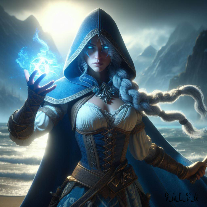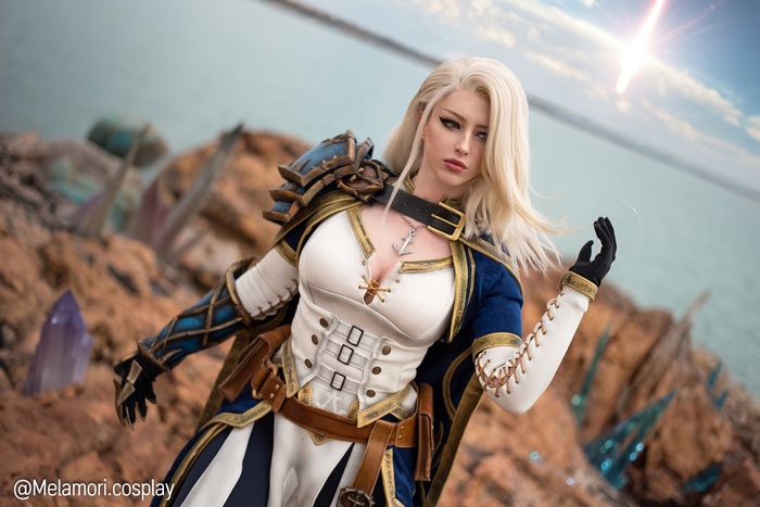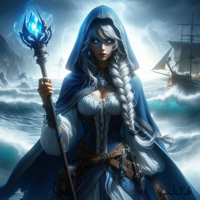 Завершенная работа над фигуркой Джайны, размером в 25 см. Кончики волн и детали посоха светятся в темноте.