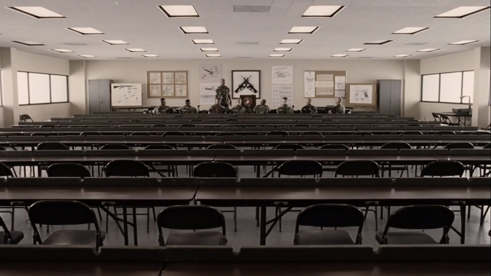 Бойцы должны не задумываясь лишать жизни любого, кто попадает в прицел их снайперских винтовок, это должно стать их навыком, доведенным до автоматизма действием. Подобная этой жажда убийства взращивалась в морских пехотинцах из фильма "Цельнометаллическая оболочка" (1987), как будет видно дальше, "Морпехи" делают множественные отсылки к кубриковской классике.