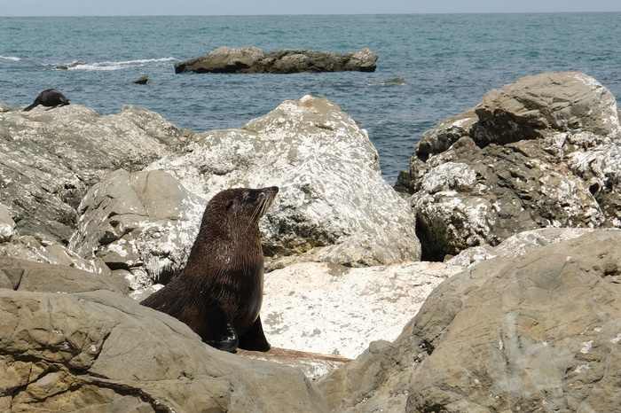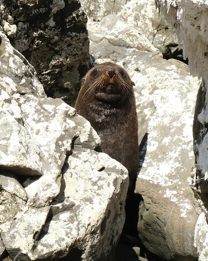 Иногда кораблик зависал около колоний морских котиков, которые светски загорали на камнях. Один некрупный светлый котик с маленькой мордочкой томно лежал на боку, облокотившись на ласт, и смотрел на большого темного усача, который с камня чуть ниже, спустив зад в воду, тянулся к светлому, активно мотал головой и дергал плечами. Ну точно пляж Геленджика: только что прилетевшая отдыхать бухгалтерша компании «Веселенькие ситцы» из Иваново, которую в экспресс-режиме охмуряет бодрый старший механик автопарка № 3 из Нового Уренгоя, потому что у него предпоследний день отпуска.