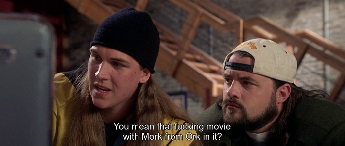 You mean that fucking movies with Mork from Ork in it? (Ты имеешь ввиду этот ебаный фильм с Морком с планеты Орк в нём)