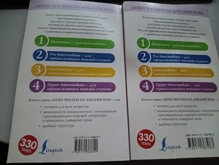 Я недавно удивился очень сильно. Вы хоть раз видели книги за смешную цену в наше время? А если книги на оригинальном языке писателей? А если к этим книгам идут пояснения и словарик по особо сложным оборотам? Так вот, фикс-прайс в самом соку как он был (именно был!!!). 330 тенге за книгу (1 рубль~5 тенге)! Да пофиг, что в мягком переплёте, все что было с прилавка смёл. Сейчас такое найдешь разве что у алкашей, распродающих семейные библиотеки рядом с центральным рынком.