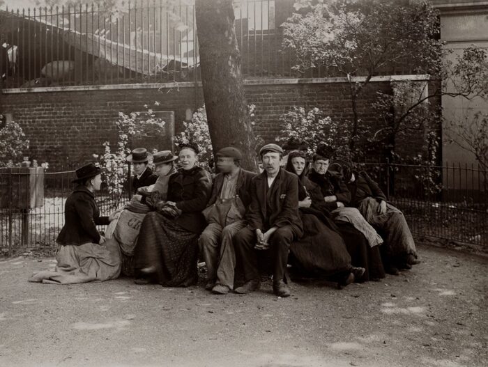 Бездомные мужчины и женщины у Спитифил Гарденс: