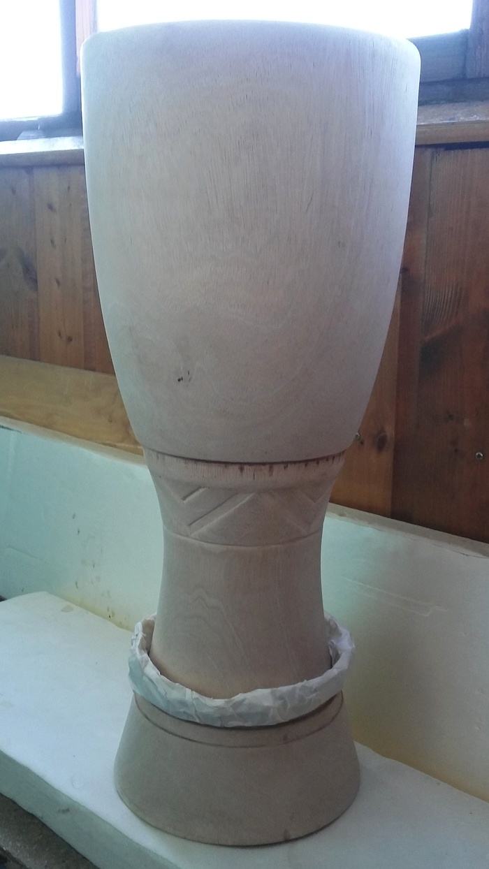 Барабан собран! Отправляем его в тёплое и сухое место, например, к батарее центрального отопления, если на улице зима (или пародия на неё, как сейчас у нас), минимум на сутки. После высыхания джембе необходимо окончательно подтянуть и настроить, а также пройтись мелкой наждачкой по мембране. Процесс настройки расписывать не буду, иначе пост растянется до совсем уж невообразимых размеров.