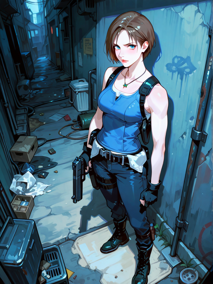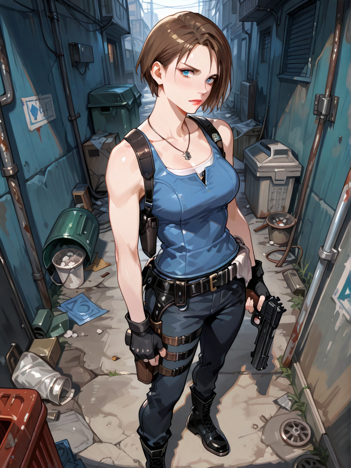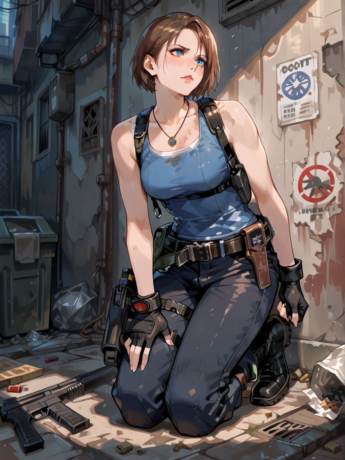 The city is eerily quiet. Raccoon City, once alive with movement, is now nothing more than a ghost town, its streets littered with abandoned cars and crumbling ruins. The sun casts an empty glow over the desolation, but there’s no warmth—only silence, only the weight of what has been lost.