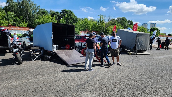 Чем ближе к Про, тем яснее становится разница в навыке, и тем чаще начинают появляться "корчи", то есть мотоциклы, подготовленные именно под соревнование. Как и с многими другими увлечениями, со стороны это может показаться каким-то малозначительным местечковым эвентом, но для участников это целое событие. Они тренировались под него, они оплатили взнос, у них подготовленный мотоцикл и этот пост я смело могу показывать как ответ на вопрос "а чего в спорт не пойдёшь, тыж норм на джимхане ездишь". Да вот поэтому. Это авто, прицеп, прогревы шин и генератор.